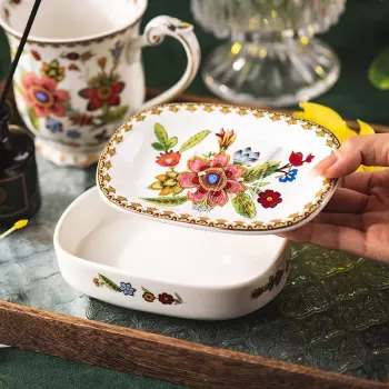 Luxury Gold-Plated Ceramic Double Soap Dish with Drain – Modern Bathroom Accessory